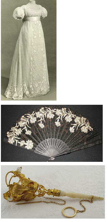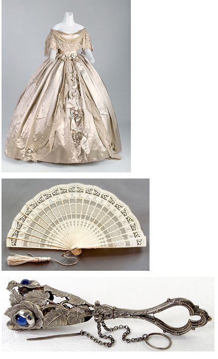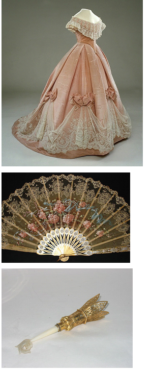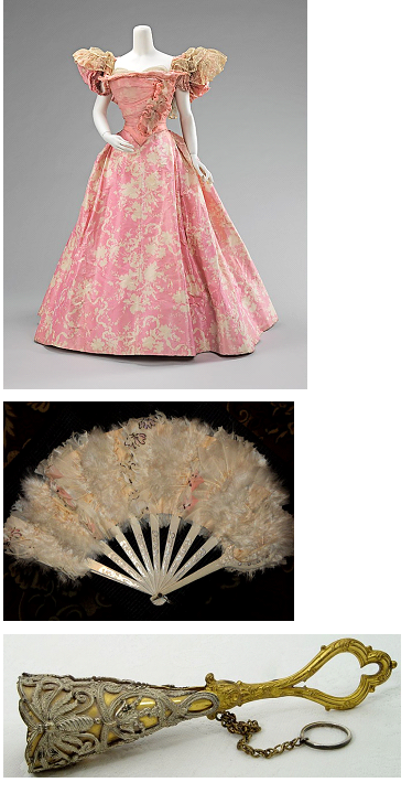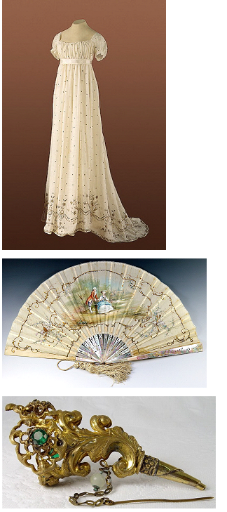 Выберите себе платье из предложенных здесь, и подберите для него один из аксессуаров: веер или портбукет (футляр из серебра или платины в виде воронки, с запаянным нижним концом для маленького букета).