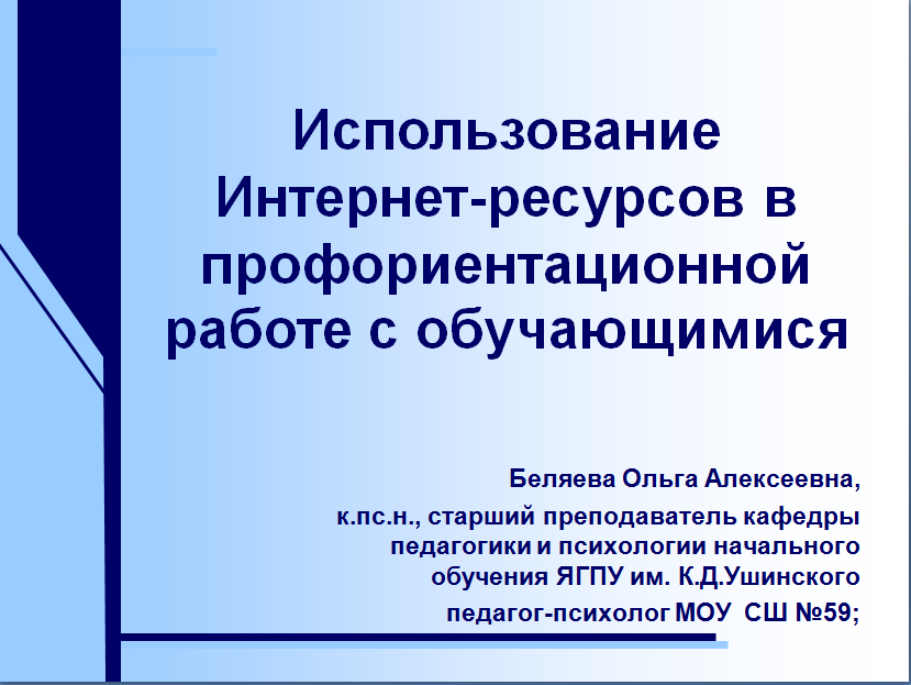 - Использование интернет-ресурсов в профориентационной работе с обучающимися.