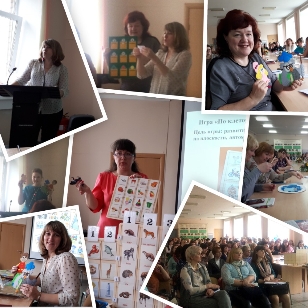 Далее выступающими было представлено большое количество визуально-тактильных игр, направленных на формирование математических представлений, познавательных и речевых функций, а также сенсорного развития у детей с ОВЗ. Участникам мероприятия была предоставлена возможность опробовать игры и побывать в роли ребенка.