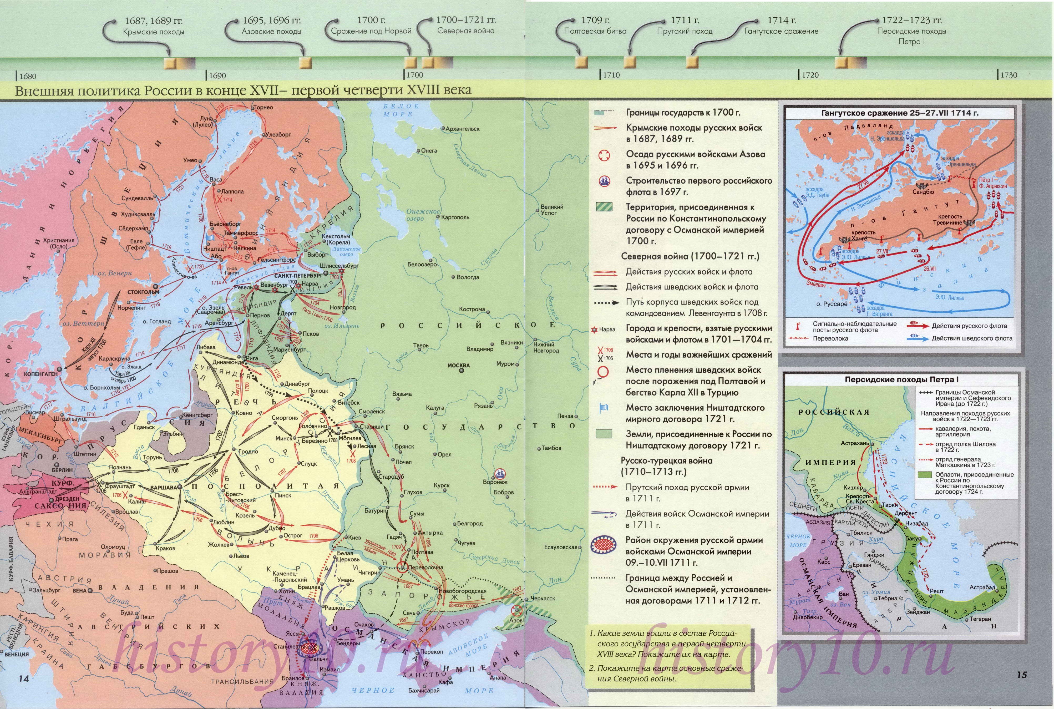 Победы русского флота вынудили шведом начать переговоры о мире. В 1721 г. в Ништадте был заключен мирный договор между Россией и Швецией, по которому Россия возвращала Швеции Финляндию (кроме Выборга), но получала балтийское побережье от Выборга до Риги с огромными территориями Лифляндии, Эстляндии и Ингерманландии. Мирный договор юридически закрепил решение той исторической задачи, которая; стояла перед Россией со времен Ивана III — обеспечить выход к Балтийскому морю.